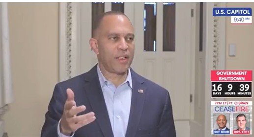 House Minority Leader Hakeem Jeffries launches a disgusting tirade against White House Press Secretary Karoline Leavitt following her comments about the Democratic Party. Credit: C-SPAN 3 screenshot