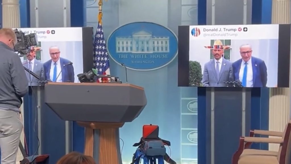 The White House press office was savagely trolling the leftist media and the Democrats this afternoon, showcasing the Sombrero meme that President Trump posted of House Minority Leader Hakeem Jeffries in the White House Press Briefing Room.