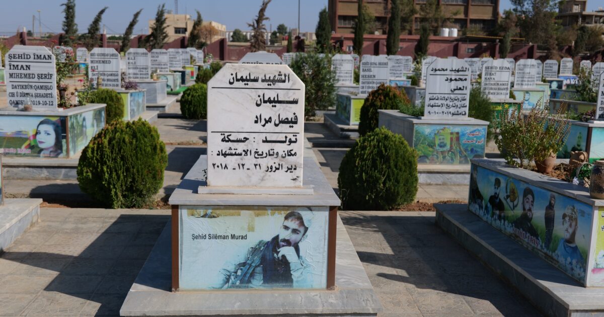 Across Rojava, the Kurdish-led autonomous region of Syria, each city has a cemetery dedicated to the martyrs who were killed by ISIS. In Qamishli, the largest city and de facto capital of Rojava, the cemetery is called the Martyr Delil Saroxan Cemetery, named after the first local resident killed by ISIS.