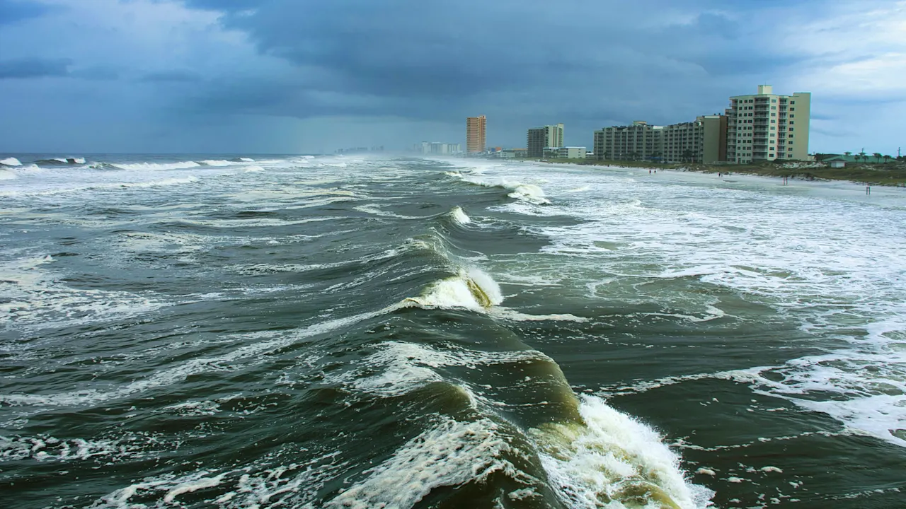 Storm surge is the rise in the ocean’s water level, caused by a combination of powerful winds pushing water toward the coastline and reduced air pressure within the hurricane compared to the pressure outside of it. In addition to these factors, waves breaking close to the coast cause the sea level to increase near the coastline, a phenomenon we call wave setup, which can be an important component of storm surge.