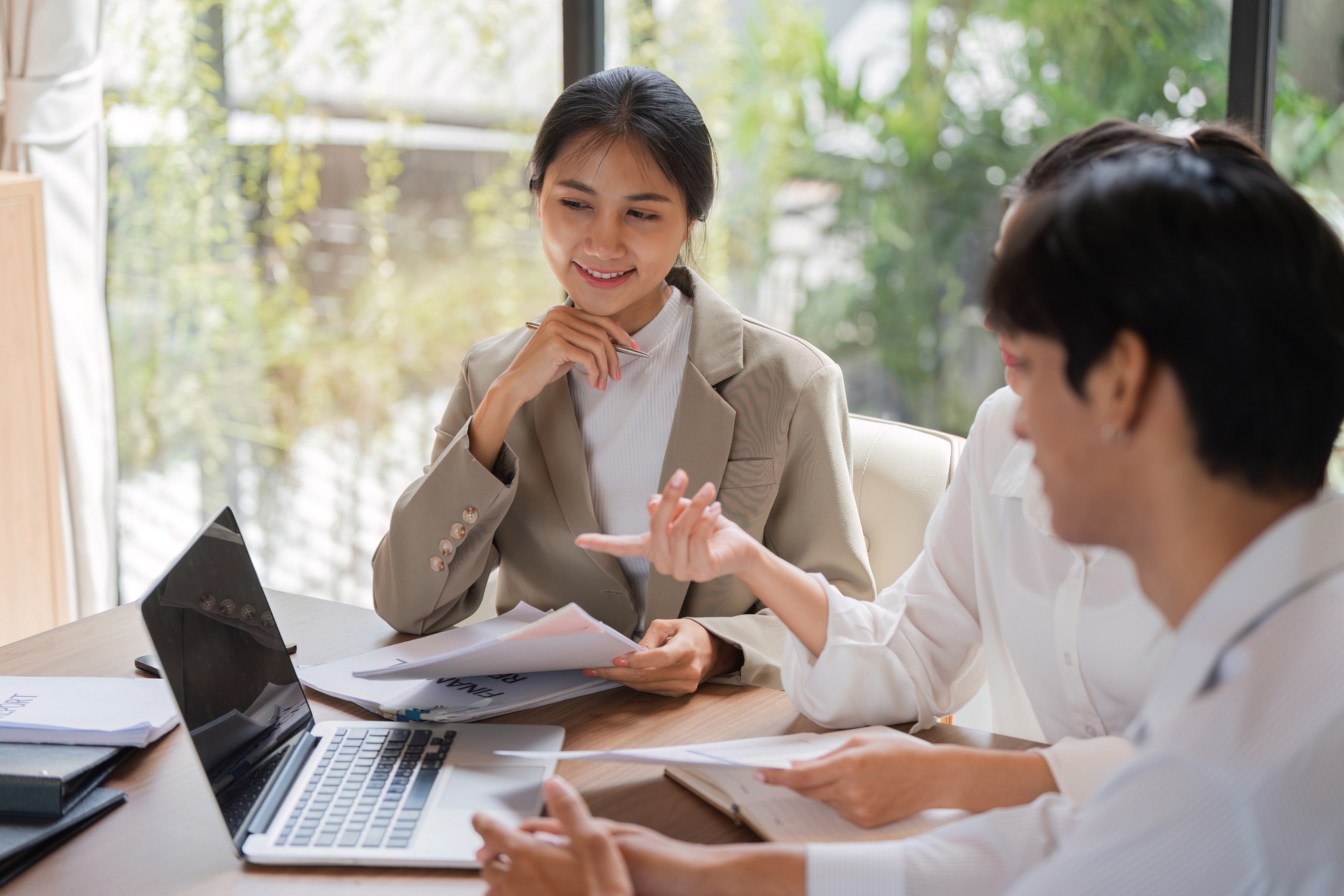 Team of asian businesswomen are having a productive meeting, discussing new ideas and strategies for