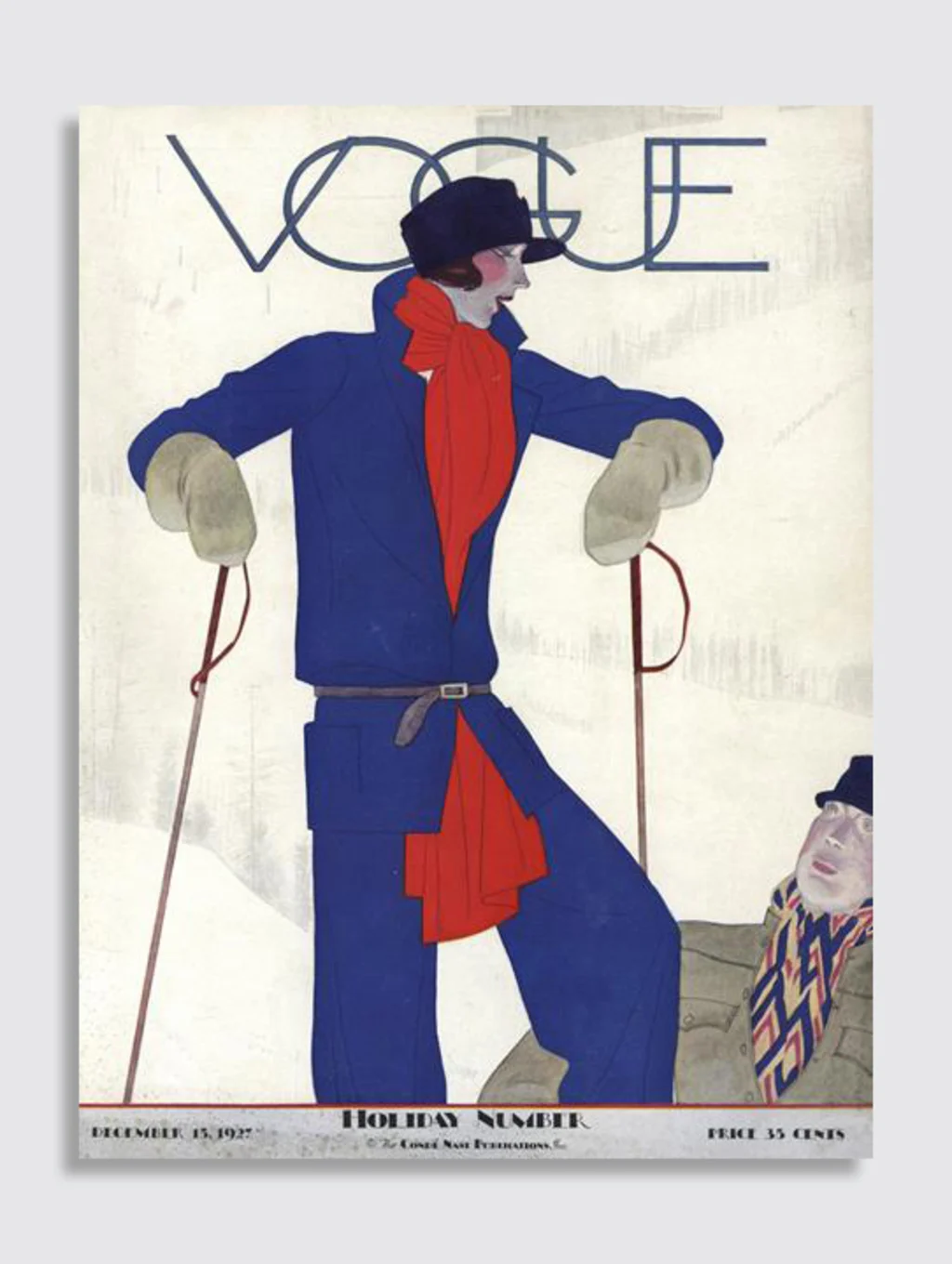 Throughout the 20th century, the glamour of skiing has been defined by women’s fashion. In the 1920s, Vogue magazine featured illustrations of elongated skiing women on their covers. Designer Pucci’s aerodynamic one-piece ski suit premiered in Harper’s Bazaar magazine in 1947, while Moncler’s ski anoraks—photographed on Jackie Kennedy in 1966—gave birth to a vision of American ski “cool.” Changing ski fashions were recorded in photographer Slim Aarons’s resort photography, capturing the leisure class on and off piste between the 1950s and 1980s.