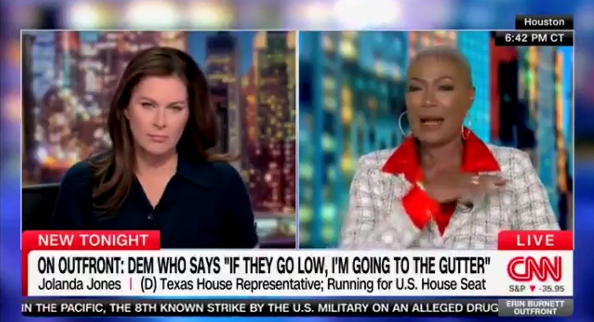 Jolanda Jones, a Texas State Democrat Rep. who is running for a US House seat, went on CNN and told host Erin Burnett that she’s going to get violent with Republicans because she’s from the ‘hood,’