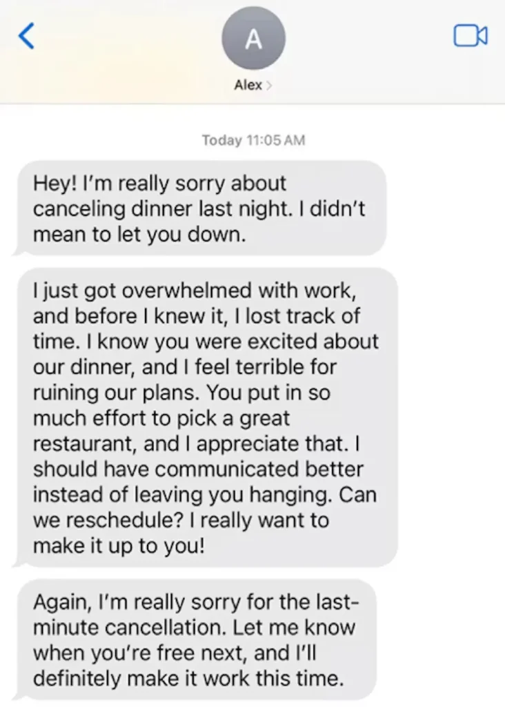 An AI-generated fictional apology sent via text was one of the messages participants evaluated in a recent study. [Source: Zhu & Molnar (2026)]