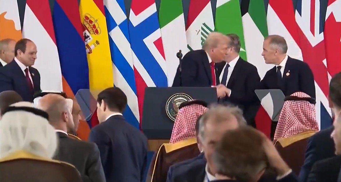 President Trump Canadian PM Mark Carney hot mic at peace summit in Egypt