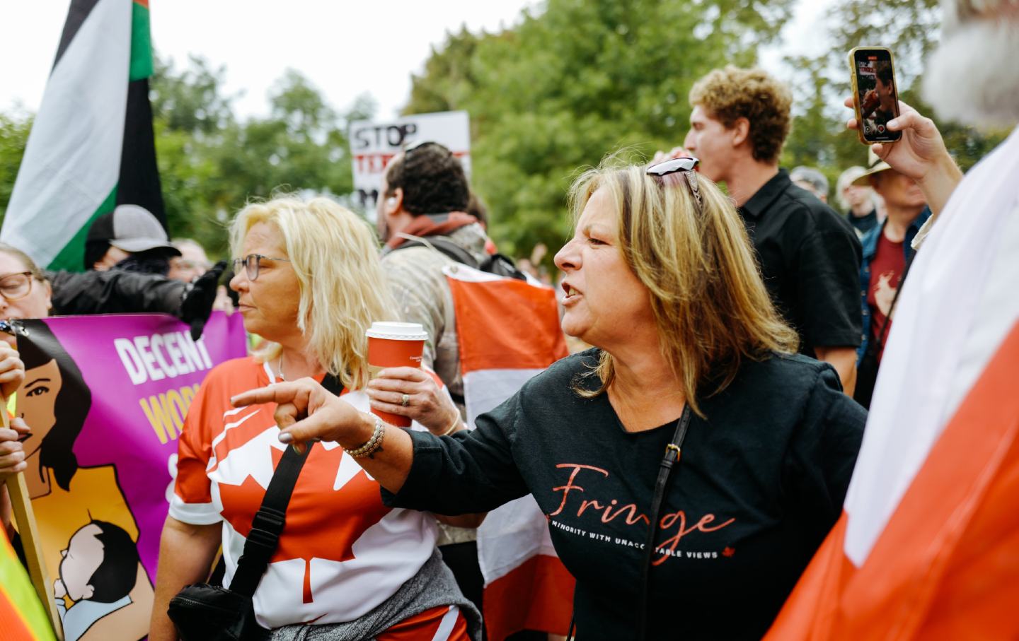 Anti-Immigrant protesters engage in angry exchanges with counterprotesters at a Canada First rally in Toronto, Ontario, on September 13, 2025.(Michelle Mengsu / Getty Images)
