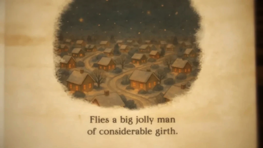 The first instance, from Saturday’s cold open, shows an illustrated Christmas storybook. The images feature a hazy, yellowish hue and an image of streets that don’t connect. The next, during “Weekend Update,” showed an image of a woman playing a slot machine in an otherwise empty casino while using an oxygen tank with tubes that weren’t connected.