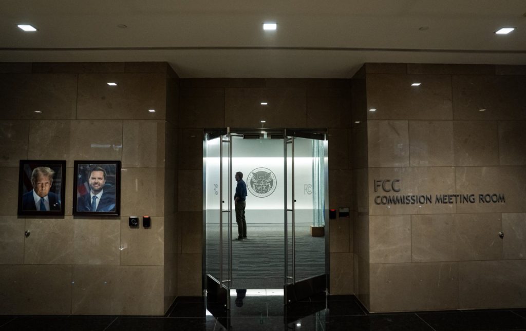 Official portraits of President Donald Trump and Vice President JD Vance displayed at the Federal Communications Commission headquarters in Washington, DC, on Wednesday, February 18, 2026.