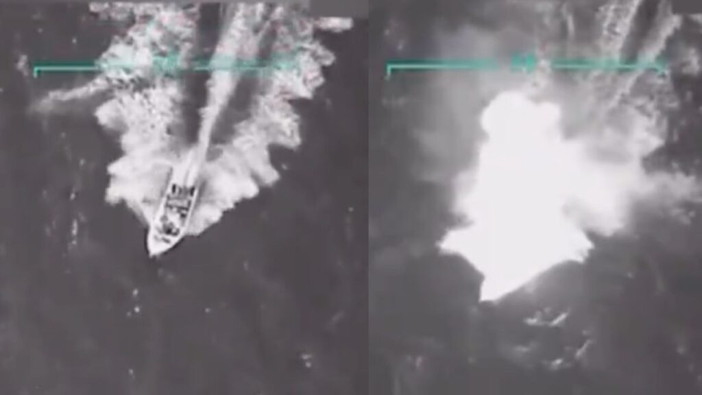 Video of the strike, shared on social media, reveals a speedboat gliding by the water earlier than bursting into flames.